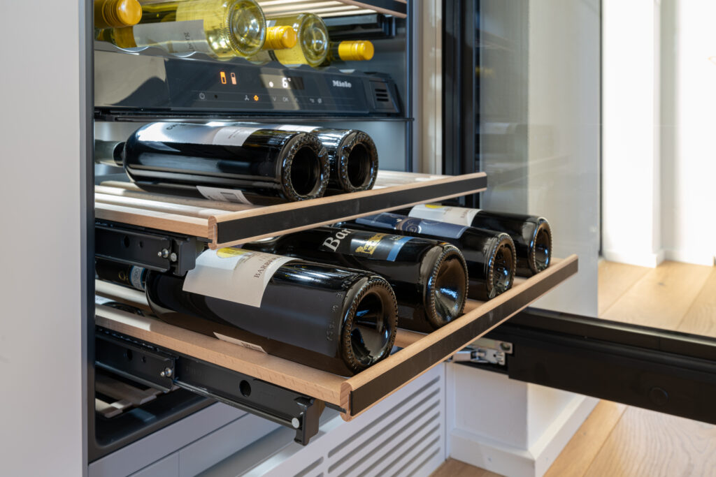 Geniessen Sie Ihre feinen Tropfen aus dem integrierten Weinkühlschrank. Ob ein vollmundiger Rotwein für gesellige Abende oder ein spritziger Weisswein für entspannte Nachmittage – hier haben Sie immer die perfekte Auswahl zur Hand.