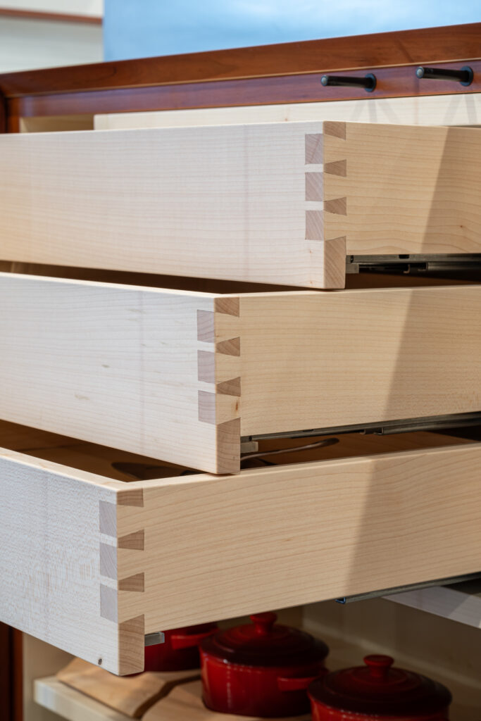 Die sorgfältig ausgeführte Schwalbenschwanzverbindung verleiht den Schubladen einen Hauch von handwerklicher Kunstfertigkeit. Perfekt, um Ihre Schätze stilvoll zu verstauen!