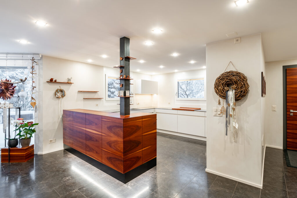 Leistung | Innenarchitektur, Raumkonzept, Küche Planung, Optimale Raumnutzung Erstellung von Materialkonzept und Gestaltung der Raumbeleuchtung Produktion und Montage Baukoordination |
